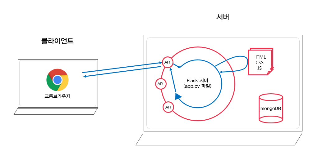 즉, 크롬 등과 같은 웹 브라우저가 클라이언트의 역할을 하는 것이다.